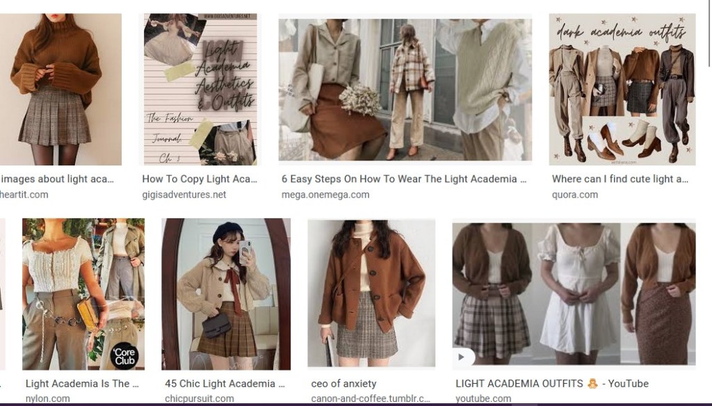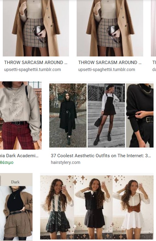 There are many aesthetics and one more is dark academia. This aesthetic is strongly connected to straight-A students, writers, architecture both Greek and gothic. Dark academia usually uses coats, skirts, shirts and camisoles. As for the color pallet, it usually uses earth tones and brown tints. Regarding the patterns it is usually common to see the plaid one, known as carraeux from the French language.