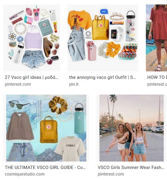 This aesthetic creates a basic girly look but can be combined with other aesthetics as well (most aesthetics have that ability). The aesthetic occurred because of a photo editing app, called visco. The perfect VSCO outfit would be an oversized t-shirt, blue jeans (denim) and white air-forces, or white sneakers in general!